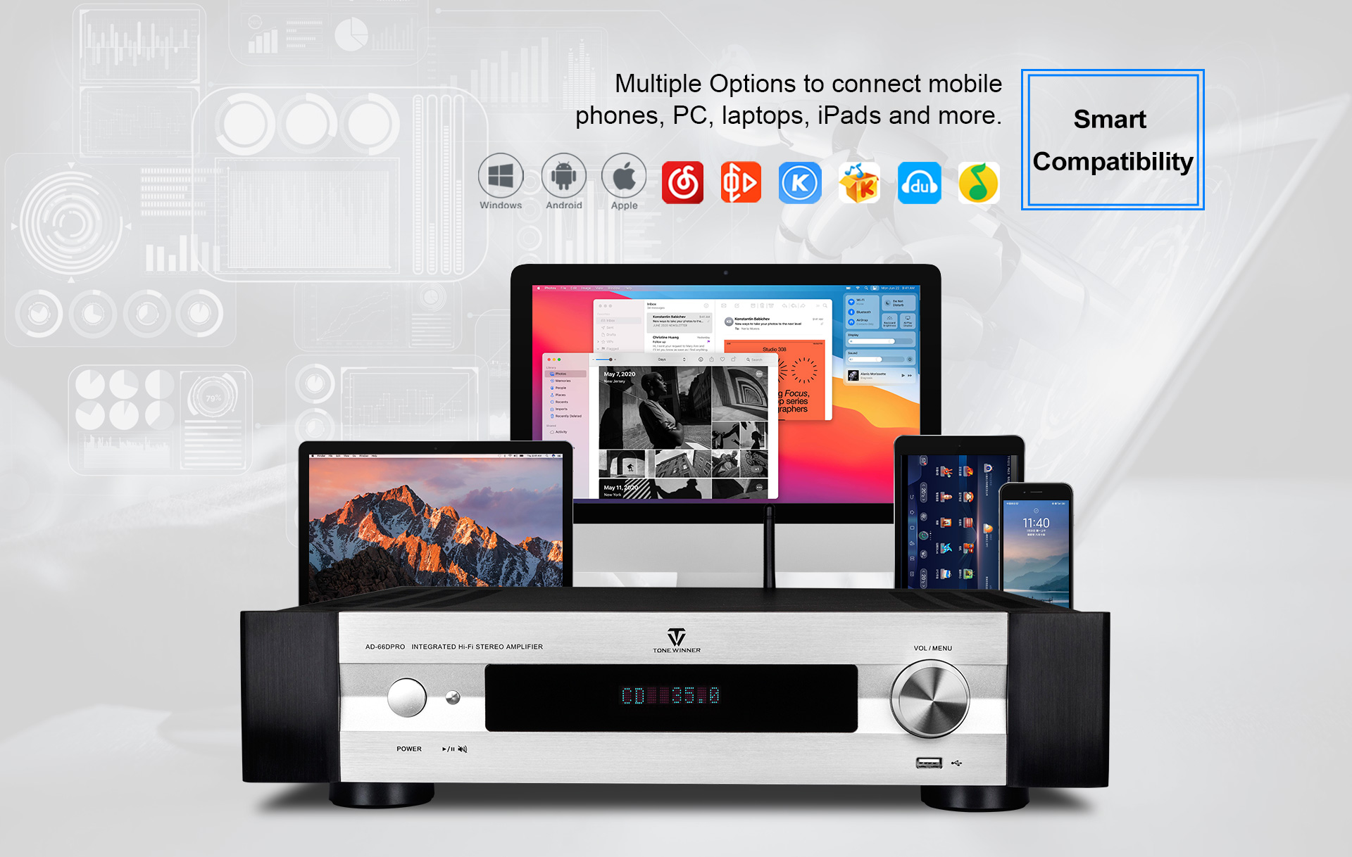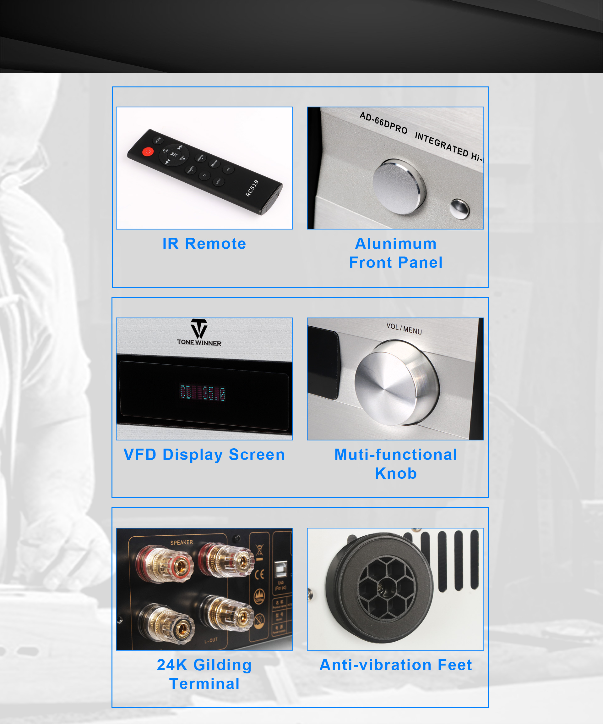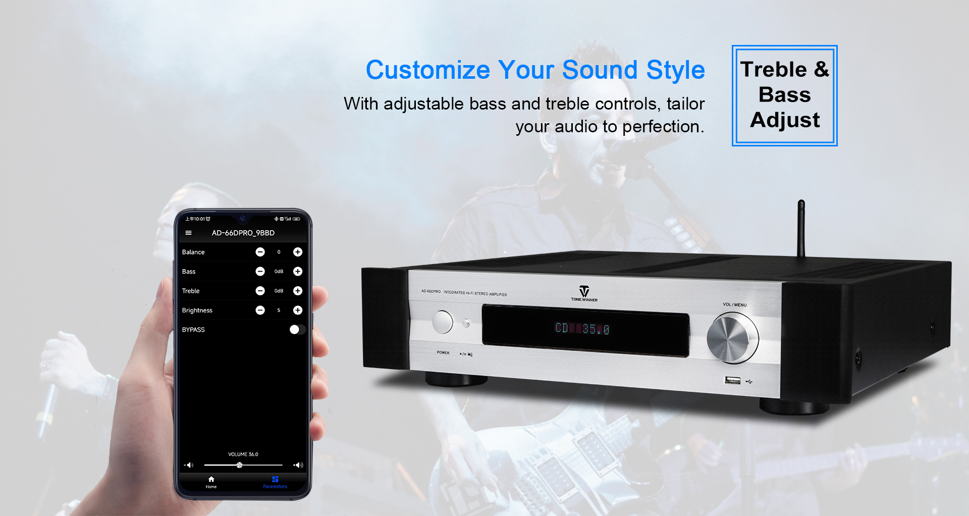 L'AD-66DPRO est une version améliorée de l'AD-66D. Il est doté d'une nouvelle interface phono MM/MC et d'une nouvelle application mobile. L'AD-66DPRO conserve les atouts majeurs de l'AD-66D et les enrichit de nouvelles fonctionnalités ; c'est un amplificateur Hi-Fi d'entrée de gamme fortement recommandé.