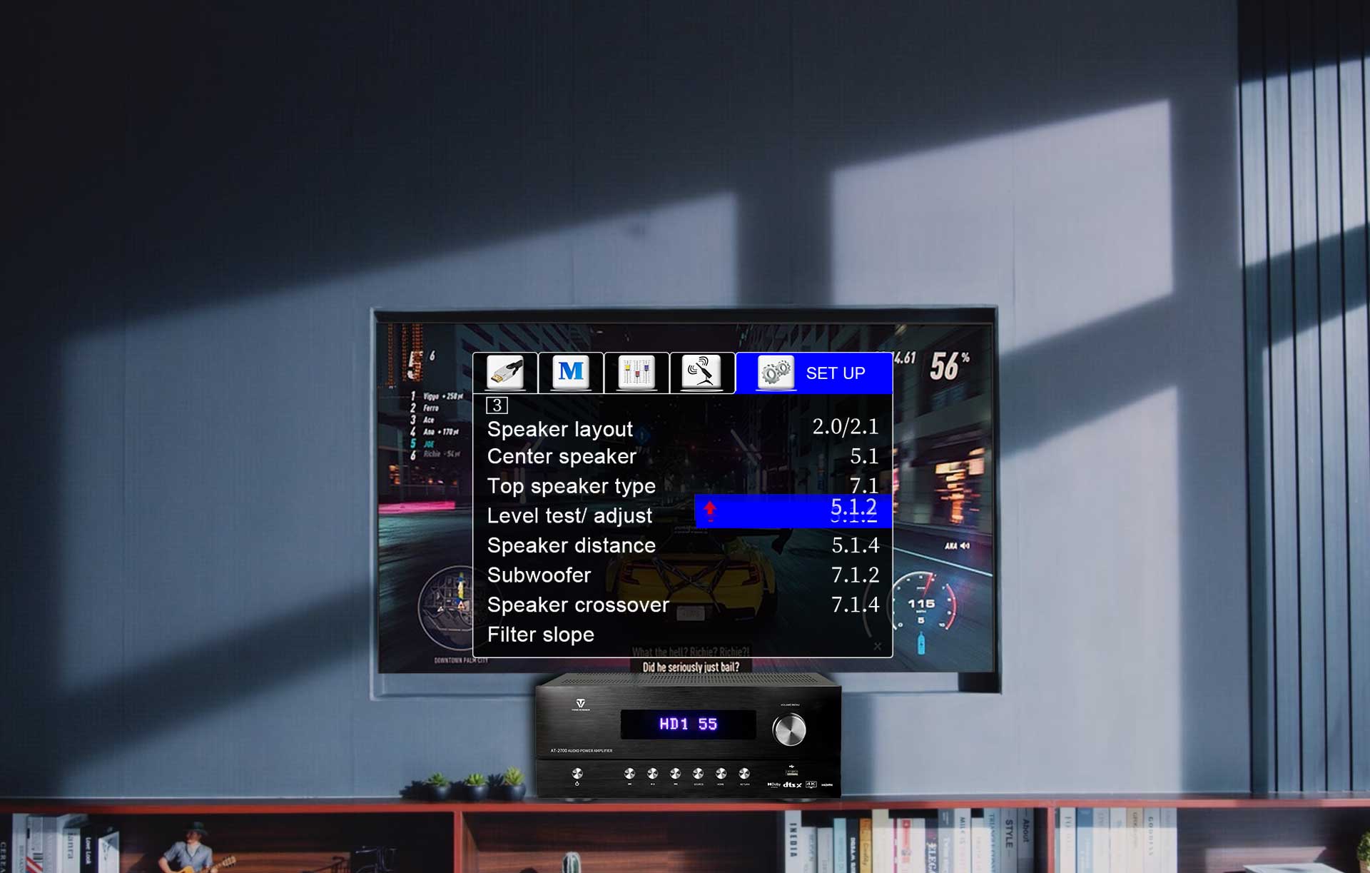 Il dispose de 7 sorties haut-parleurs et prend en charge les configurations 2.0, 2.1, 5.1, 7.1 et 5.1.2. Grâce à ses trois prises pour caisson de basses, il est également compatible avec les systèmes comportant trois caissons de basses.
