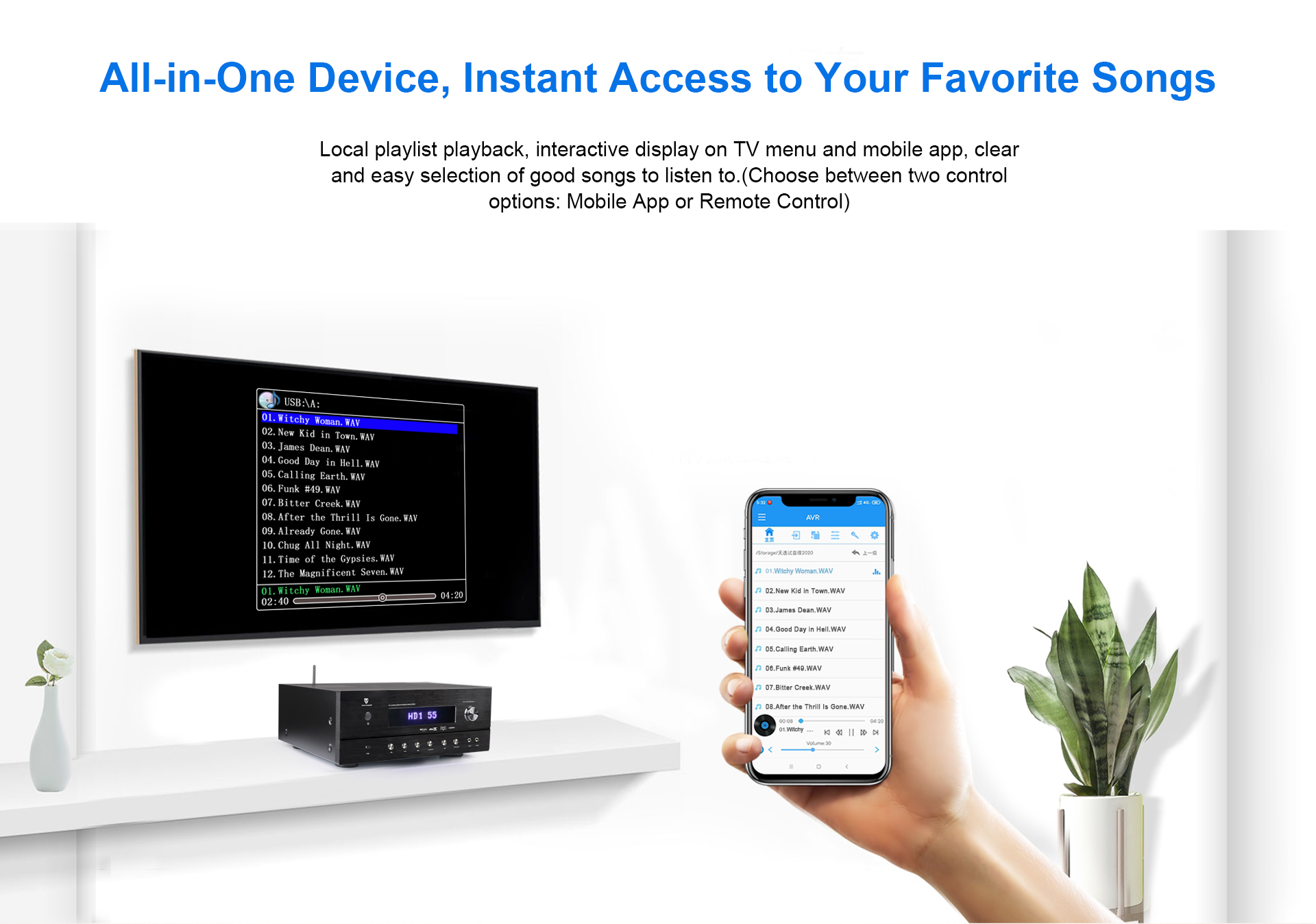 Prend en charge la lecture locale à partir de clés USB et de cartes TF jusqu'à 128 Go, compatible avec les formats musicaux sans perte courants tels que APE, FLAC et WAV, ainsi qu'avec les formats musicaux compressés comme MP3 et WMA, restaurant ainsi toute la beauté de la musique.