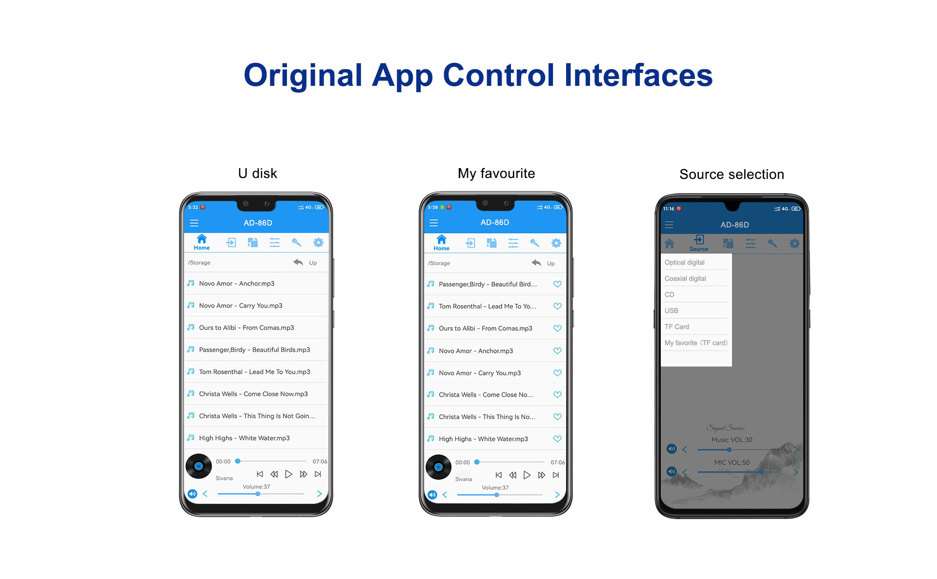 Compatible avec les clés USB et les cartes TF jusqu'à 128 Go, et prend en charge les formats APE, FLAC, WAV, MP3 et WMA.
