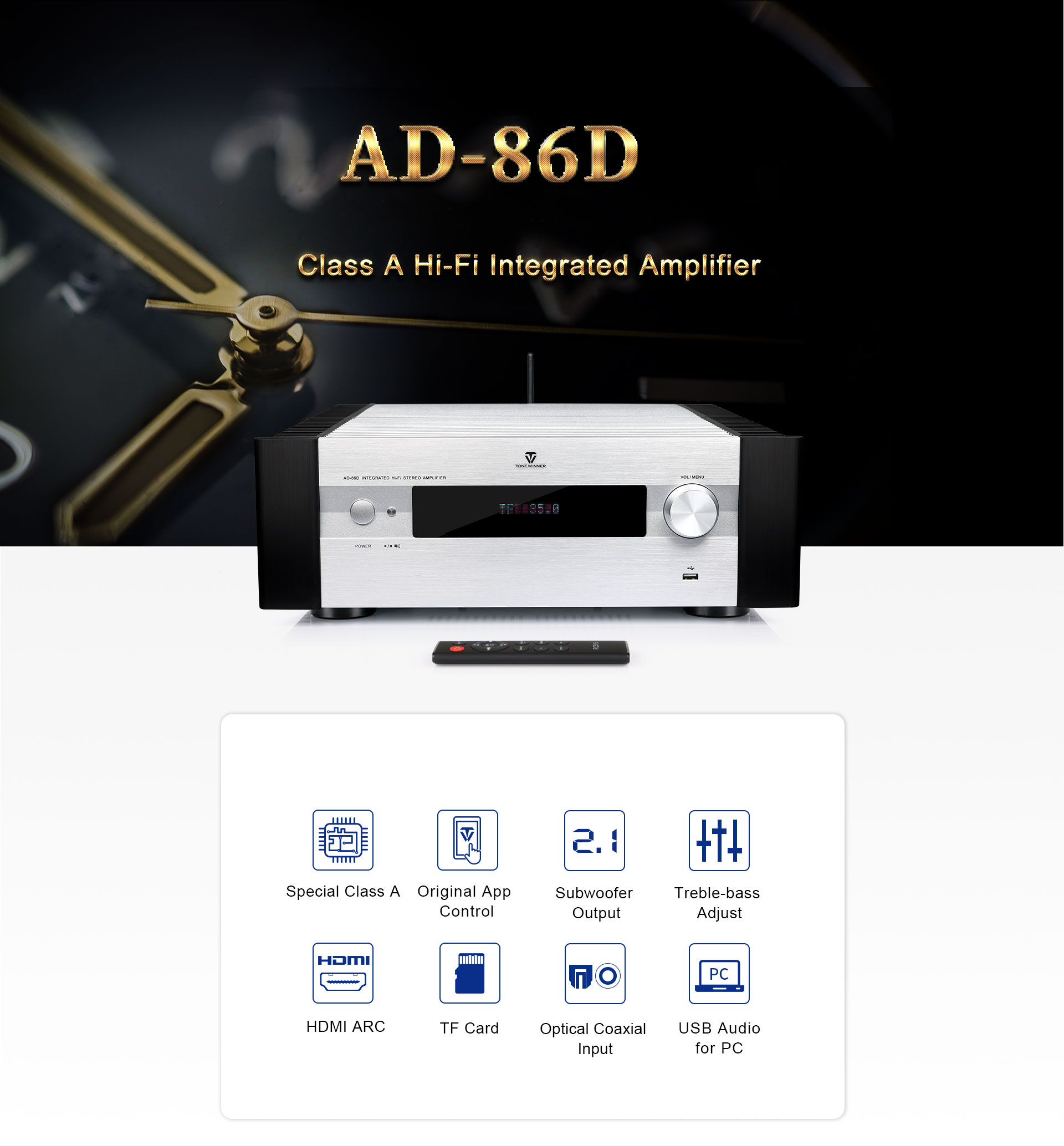 Pour répondre aux exigences des foyers modernes en matière de produits de haute qualité et à la pointe de la mode, Tonewinner a développé une nouvelle génération de produits Hi-Fi. L'AD-86D Hi-Fi est l'un de ces produits, représentant une nouvelle génération de… Amplificateur HiFi de milieu de gamme pour répondre aux exigences des jeunes audiophiles en matière d'esthétique et de son.