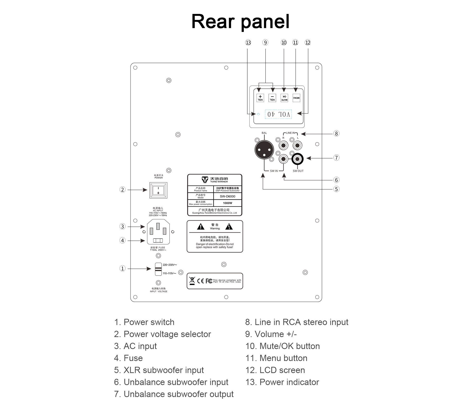 Il est compatible avec les réseaux électriques AC 110-115V et 220-230V pour diffuser des basses dans le monde entier.