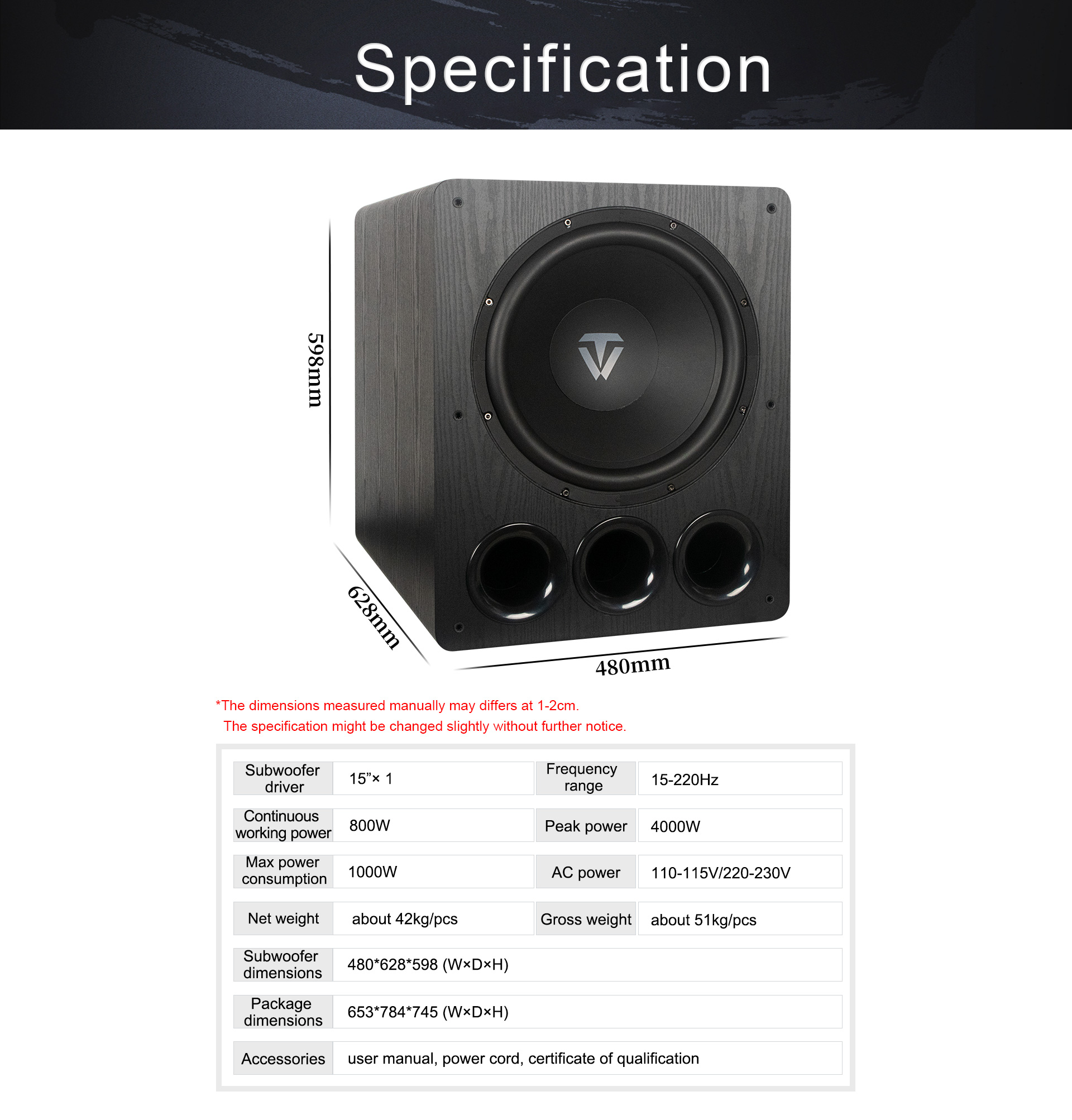 Le caisson de basses supporte une puissance de crête allant jusqu'à 4000 watts sous 3 ohms avec une efficacité de classe D.